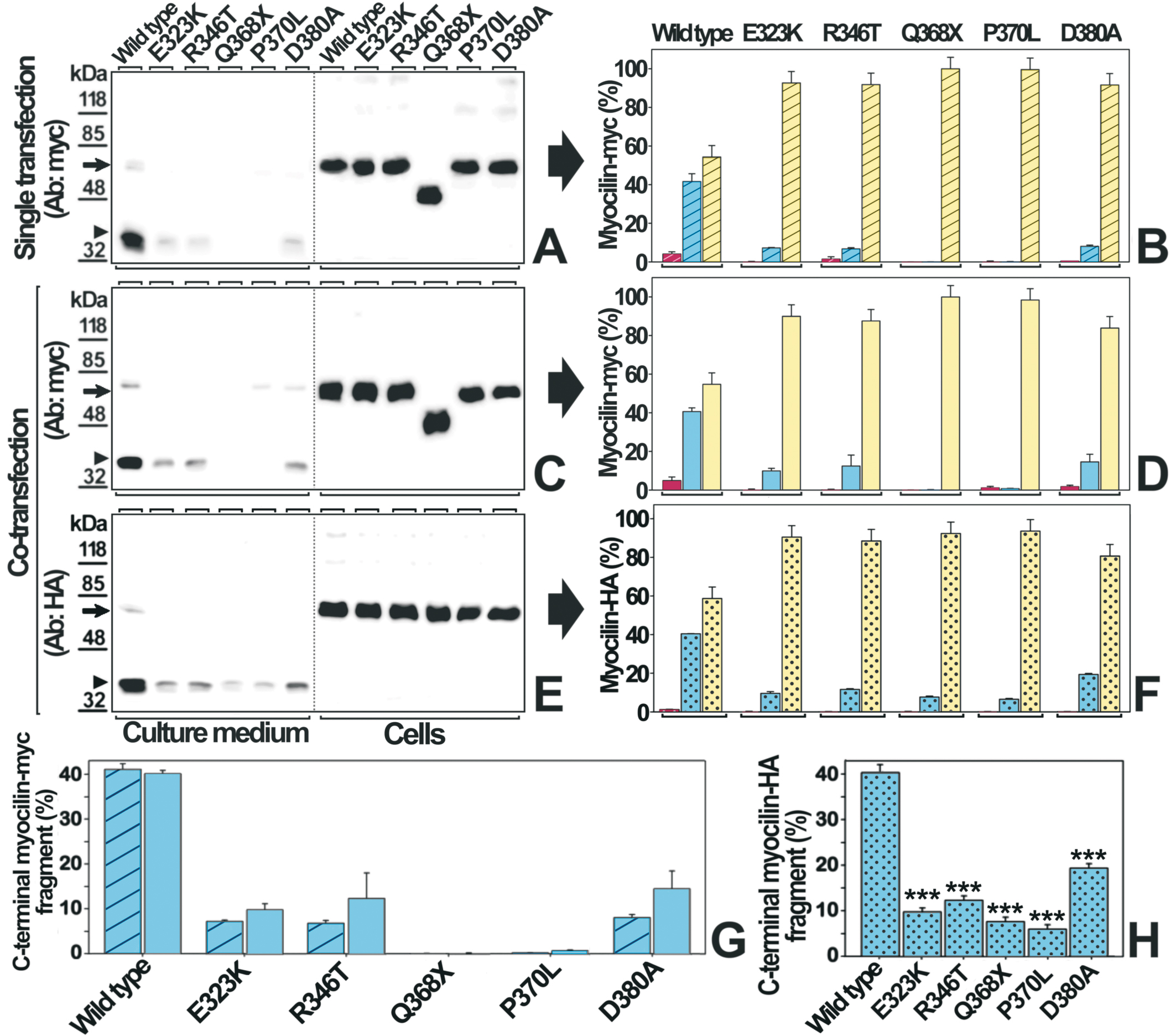 myocilin), and yellow bars represent intracellular full-length myocilin