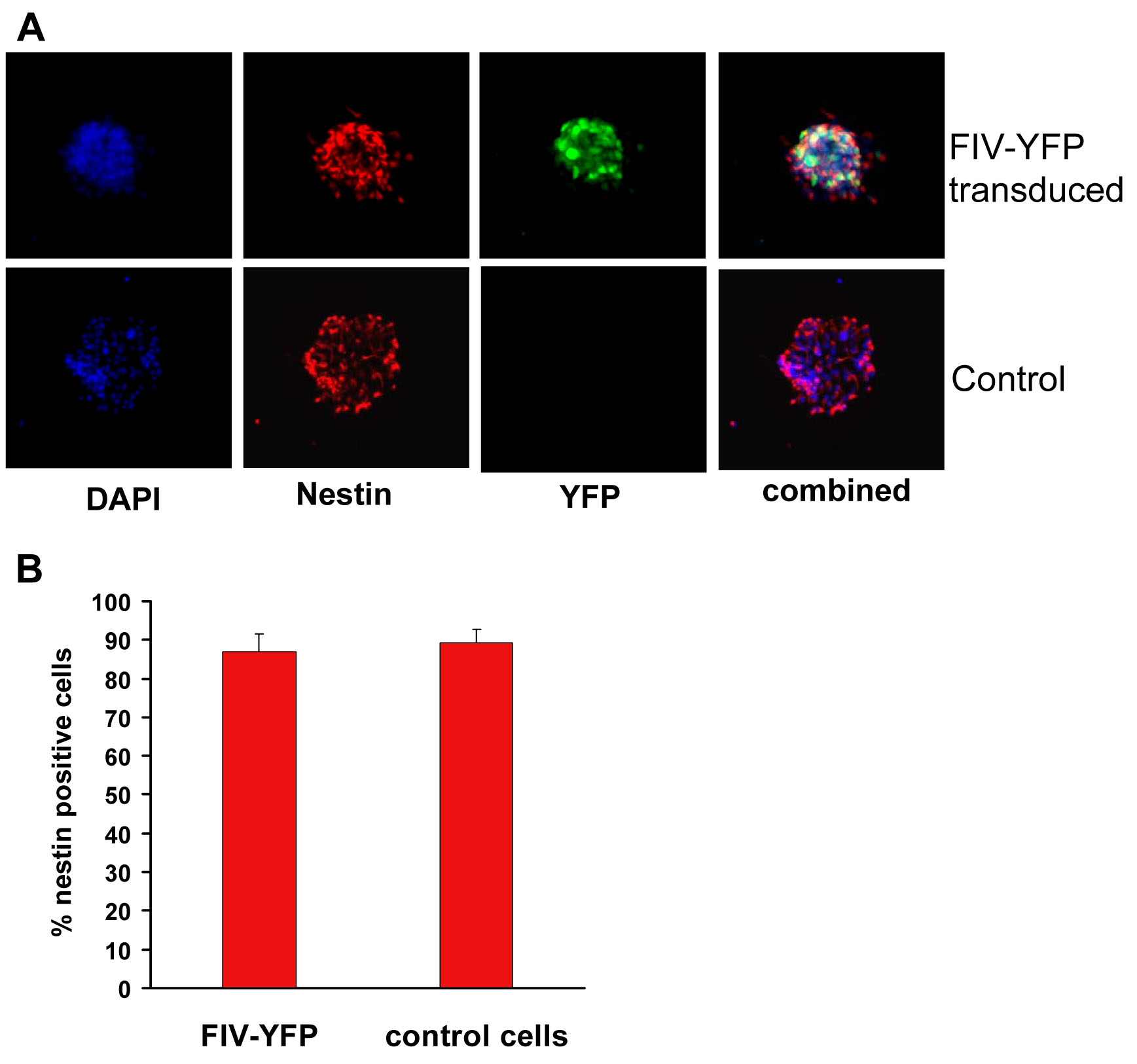 FIV-transduced retinal progenitor cells. A: Immunocytochemistry