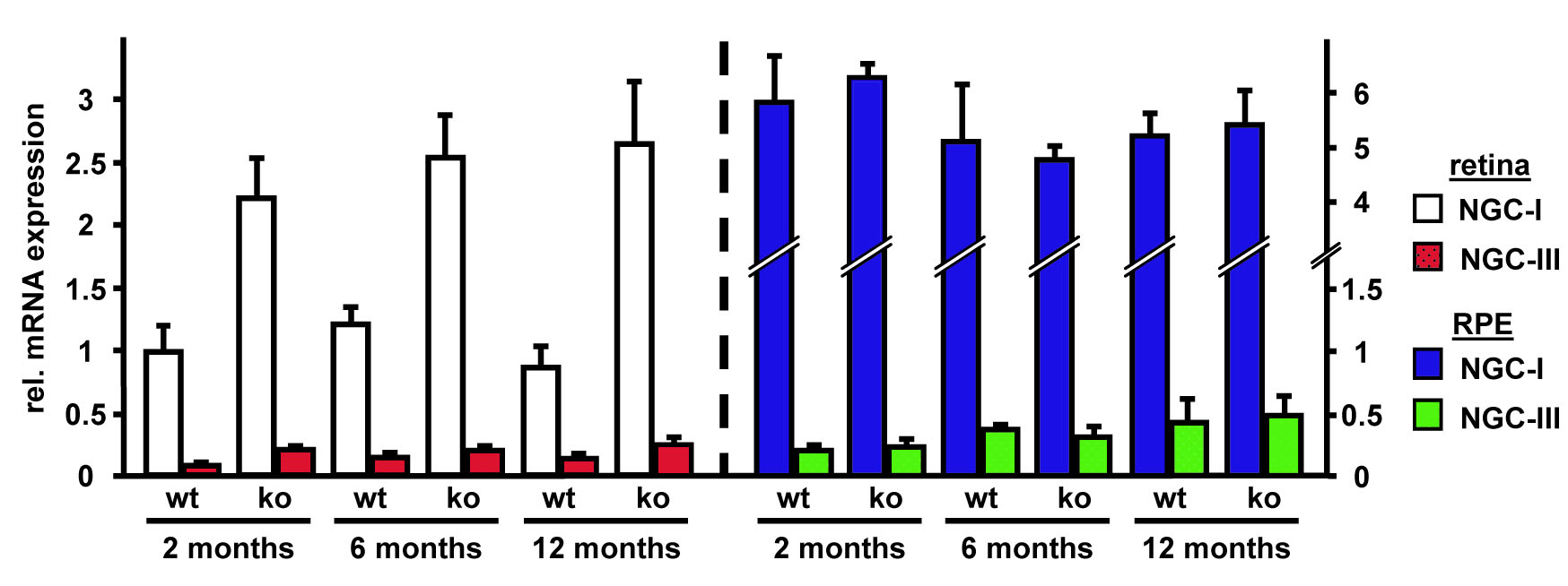 was compared to NGC-III mRNA levels (green bars). Retinal NGC-I