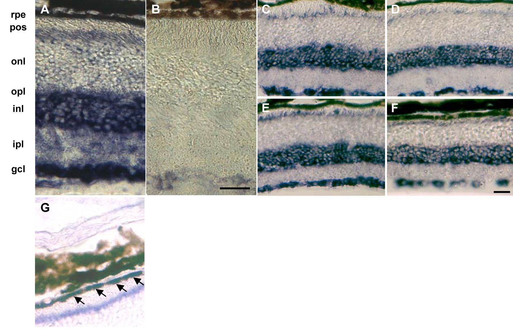 control sense (B) probes. Retinal sections of wild-type (C,D)