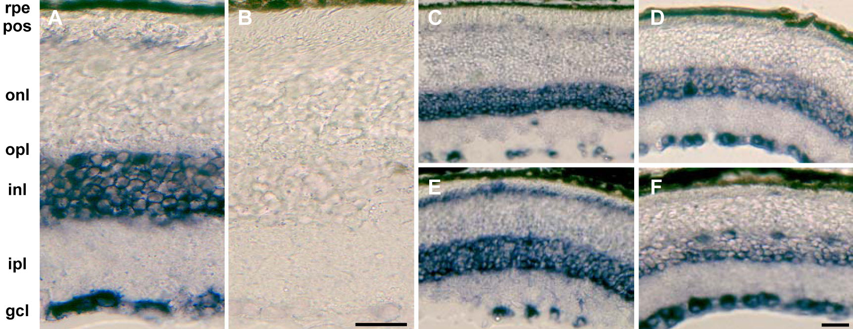 control sense (B) probes. Retinal sections of wild-type (C,D)