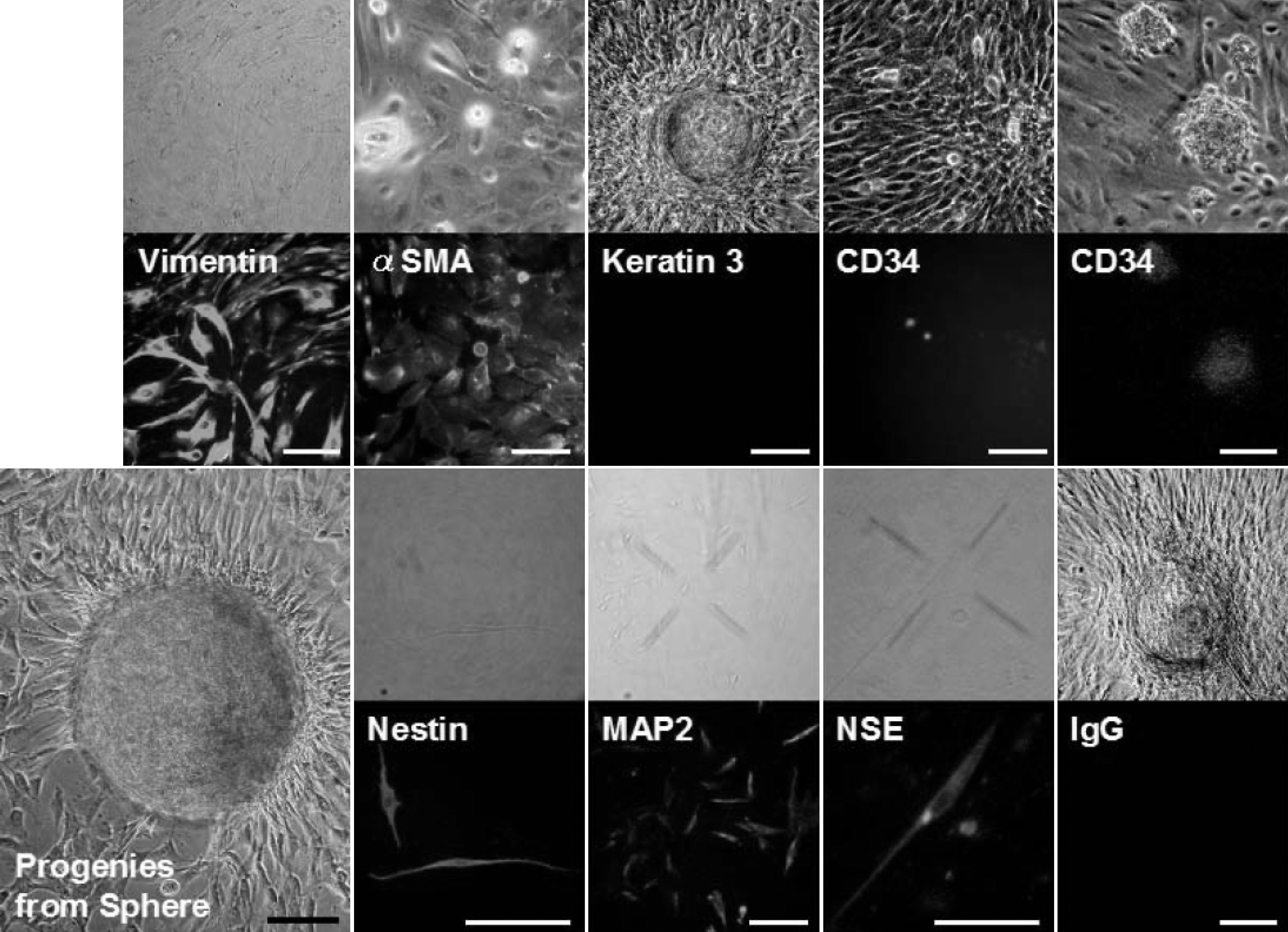 Cells migrating out from the spheres express α-SMA, MAP2, and NSE,