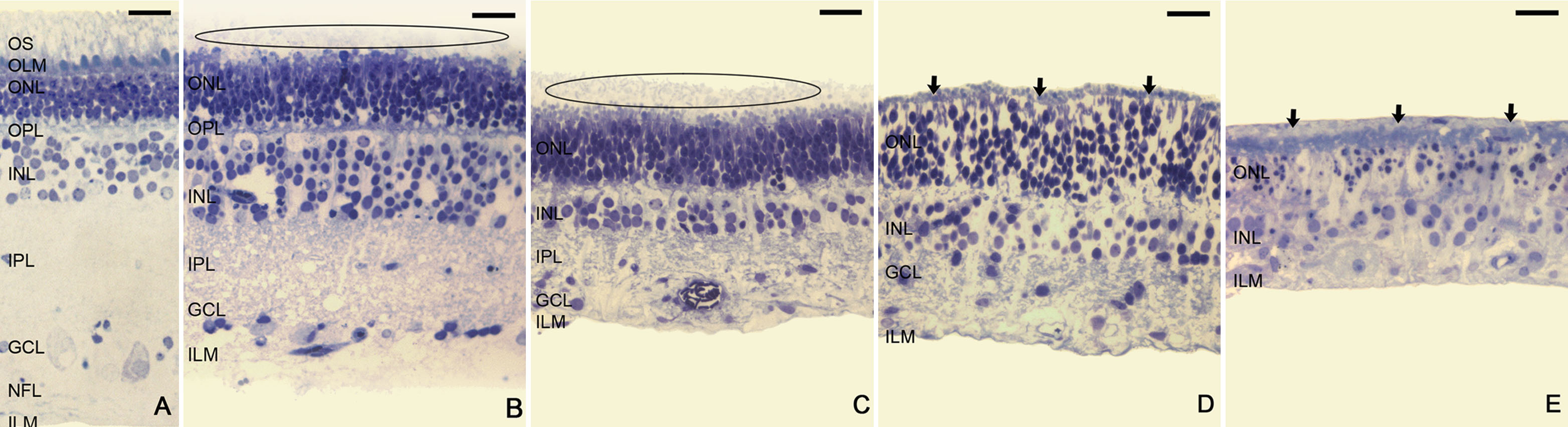 nuclear layer (INL) was apparent. The outer nuclear layer (ONL) showed
