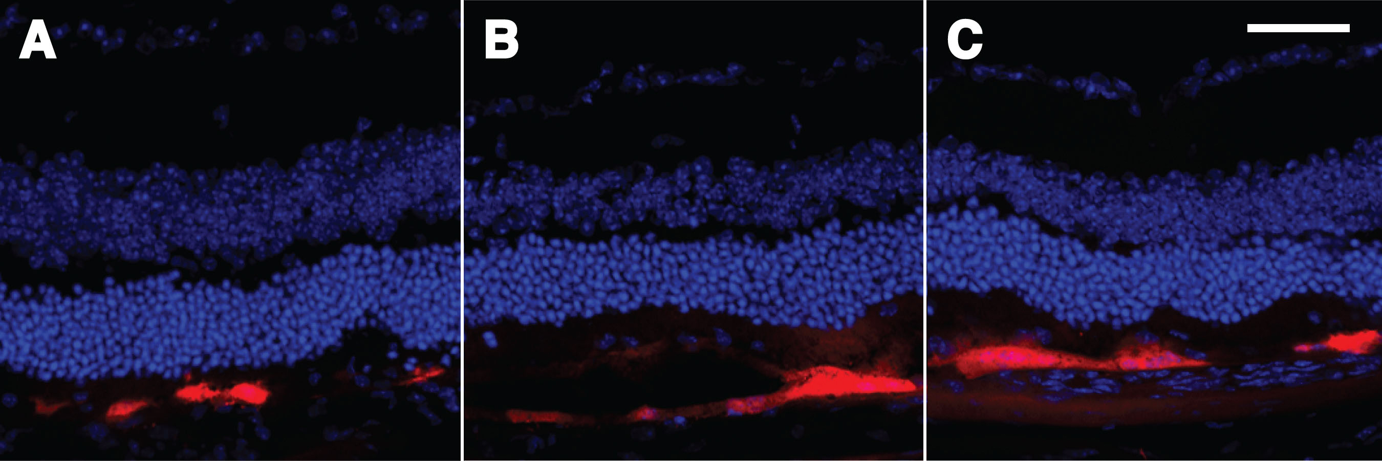 expression of tdTomato in the RPE cell layer. The red RPE cells each