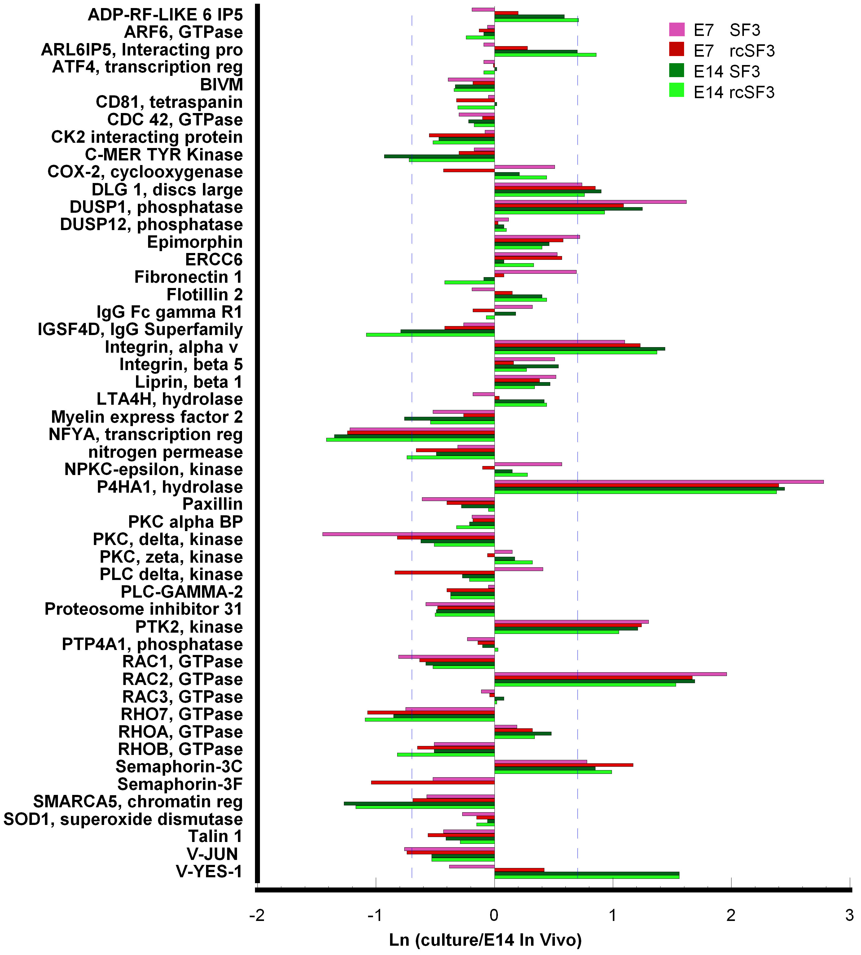 2X deviation from expression on E14 in vivo. Complete gene descriptions