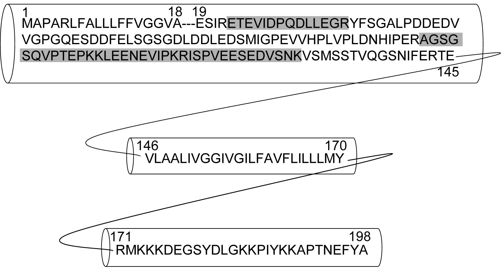 171 to 198 represents the C-terminal cytoplasmic domain. Gray