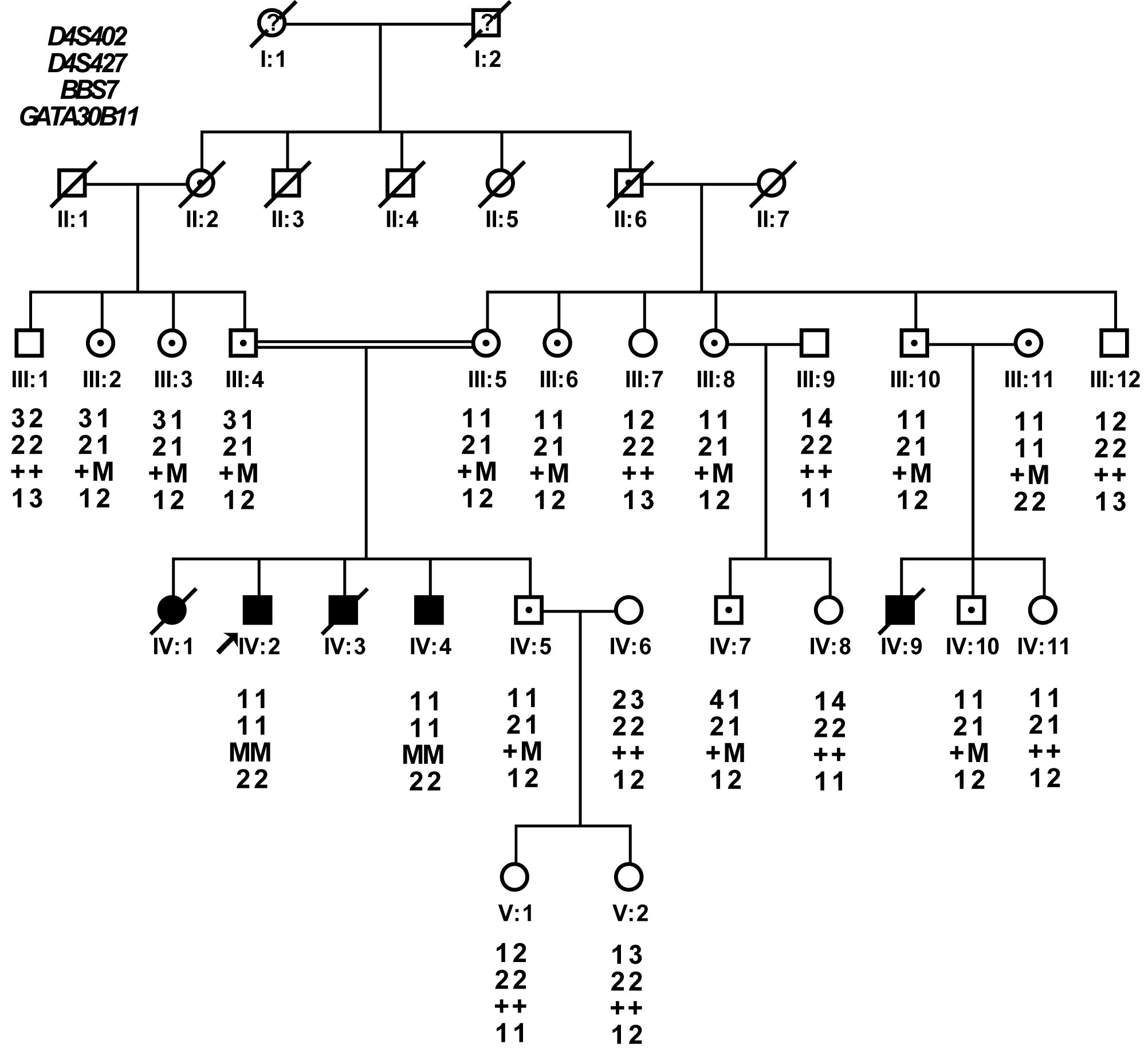 disease alleles of the STR markers and the mutation of BBS7 are