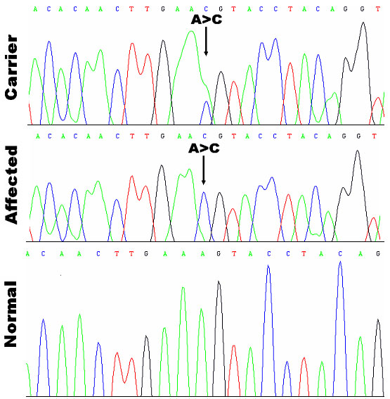 A>C mutation (S556R) compared with the normal individual in the family.