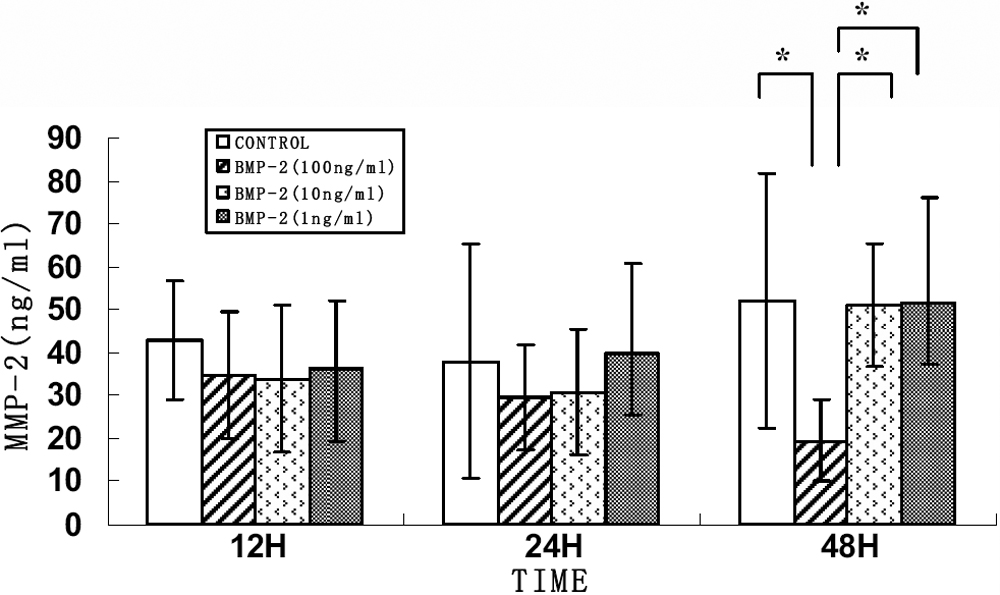 MMP-2 in the HSF incubated with different rhBMP-2 concentrations after