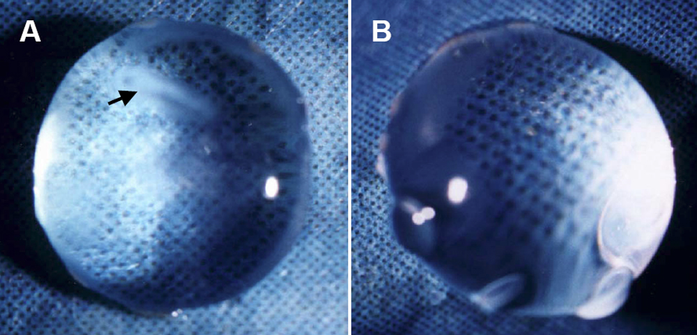 arrow. B: A natural control lens from a 16-week-old rabbit is shown.
