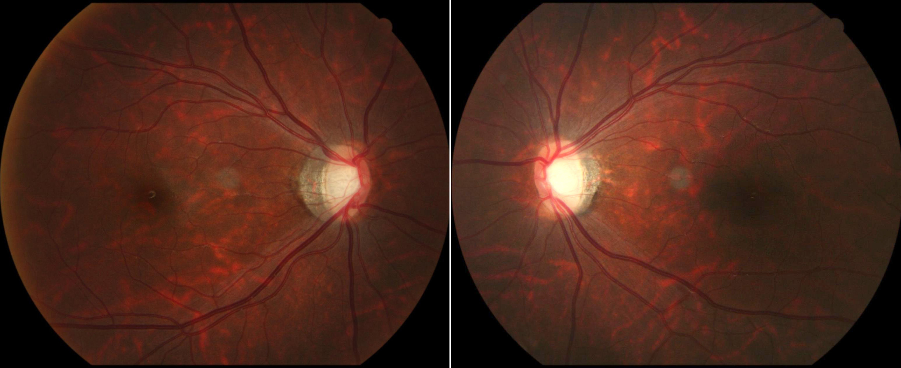 Fundus appearance of a patient with autosomal dominant optic atrophy (ADOA). Fundus of proband of family F2 showed bilateral temporal pallor of optic discs.