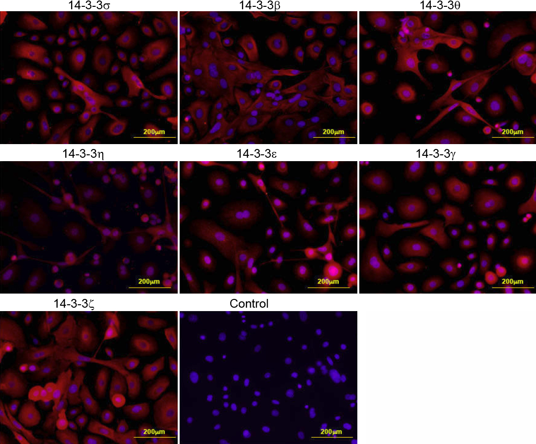 Figure 5. The expression of 14-3-3 proteins in the cultured primary conjunctival epithelial cells as determined by indirect immunofluorescence.