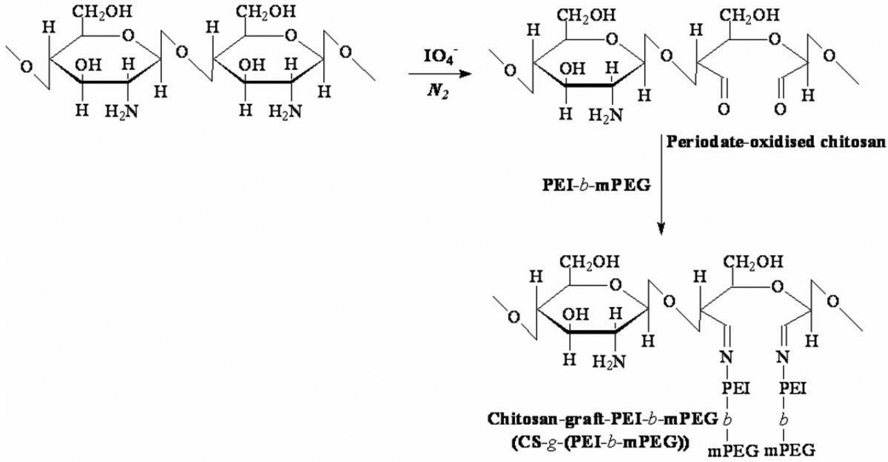 The synthesis schedule of CS-g-(PEI-b-mPEG) copolymer.