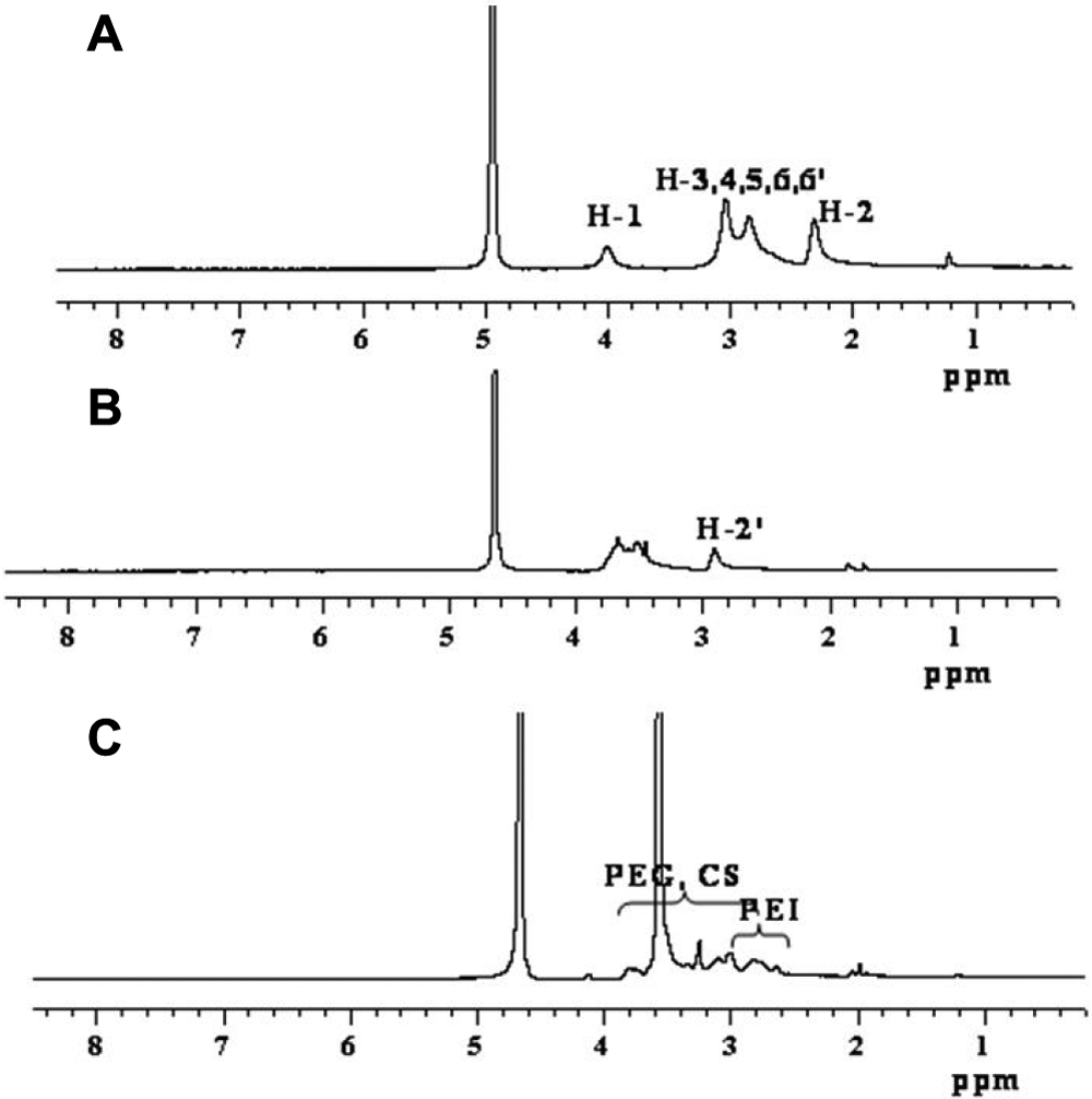 H NMR spectra of CS and its derivatives. Spectra were obtained with 32 scans, and delay of 2 s between pulses.