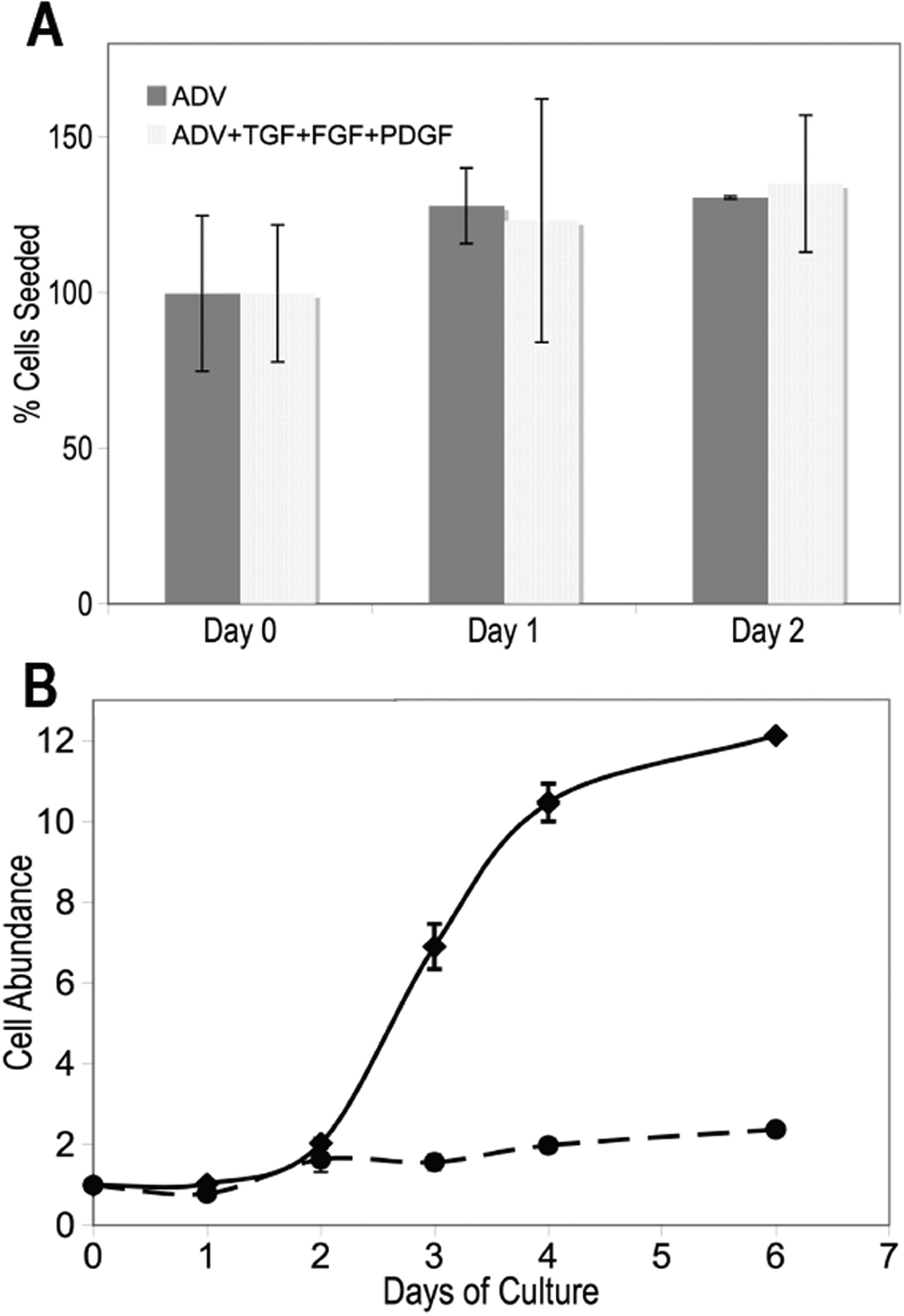 original culture. B: Primary stromal cells were plated in Advanced-DMEM containing 10 ng/ml FGF2 under attachment conditions (solid lines) or