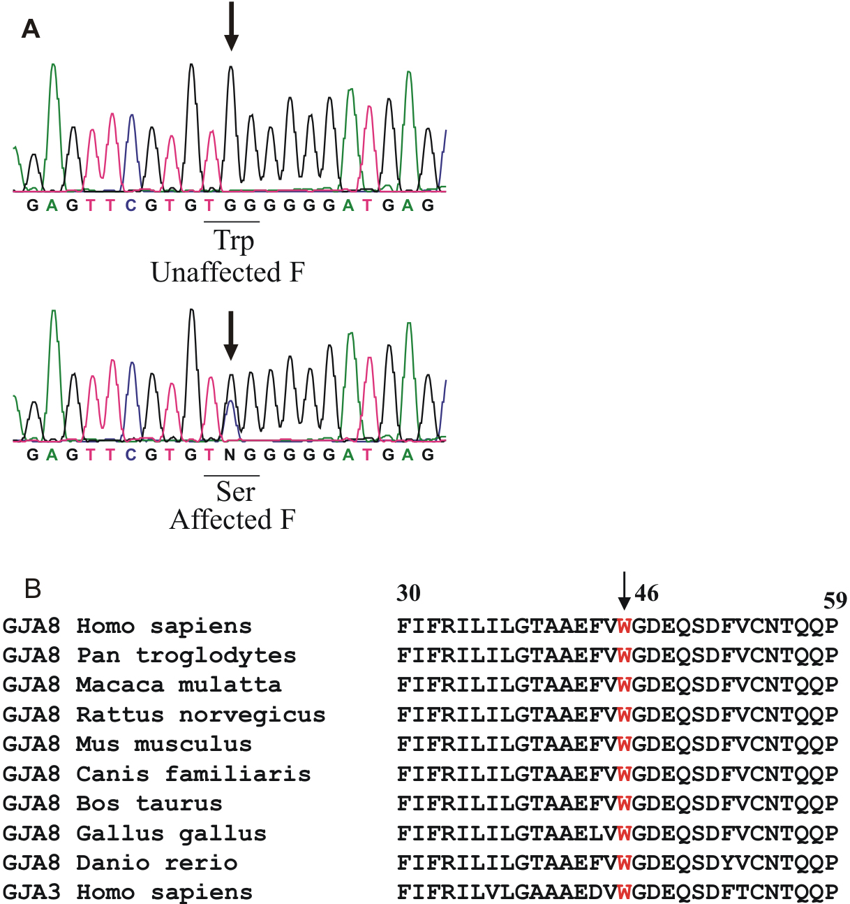 homo sapiens. A: DNA sequence analysis of a part of GJA8