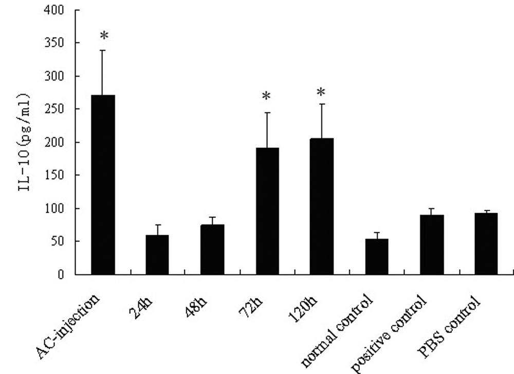 Figure 4. Detection of IL-10 produced by splenocytes. Spleens from each group of mice were harvested seven days after s.c. immunization