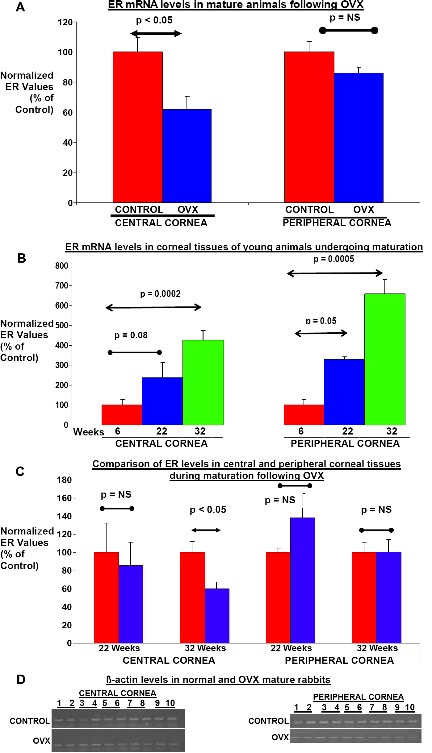 OVX on ER mRNA levels in corneal tissues of skeletally mature animals: