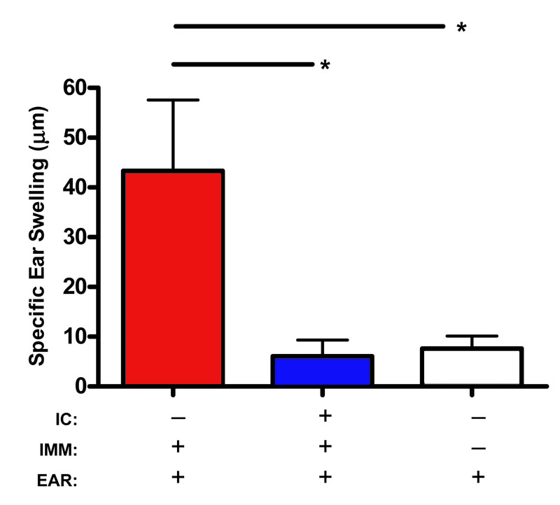 (n=6) to identify the absence of DTH did not receive either IC or IMM. ANOVA was used to calculate the statistical significance.