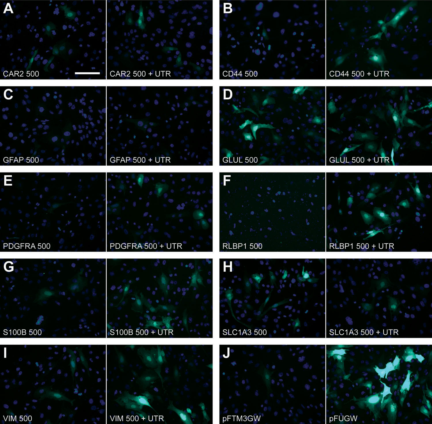 experimental promoters. eGFP expression is demonstrated for the 500 bp