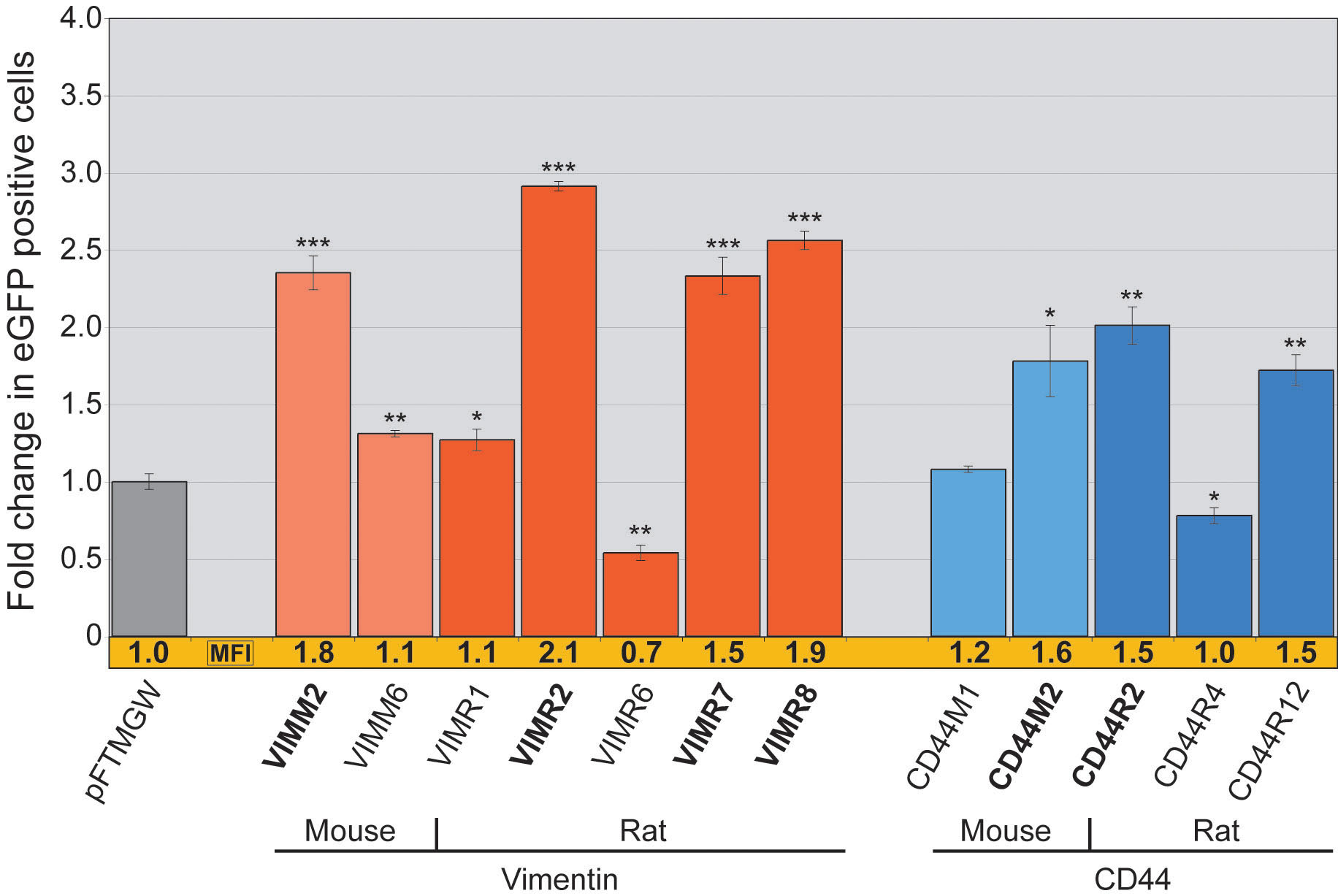 high eGFP expression levels (shown in bold). VIM constructs are shown