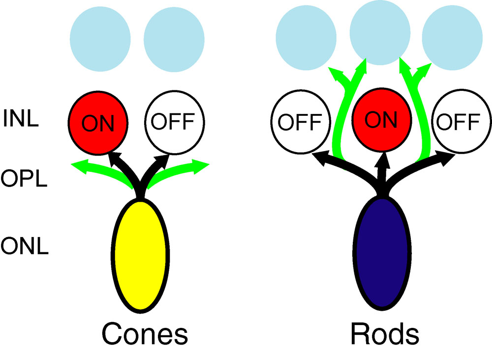 in disease. In disease, as in vitro, rod cells are attracted to multipolar cells that lie in the inner nuclear layer (INL),