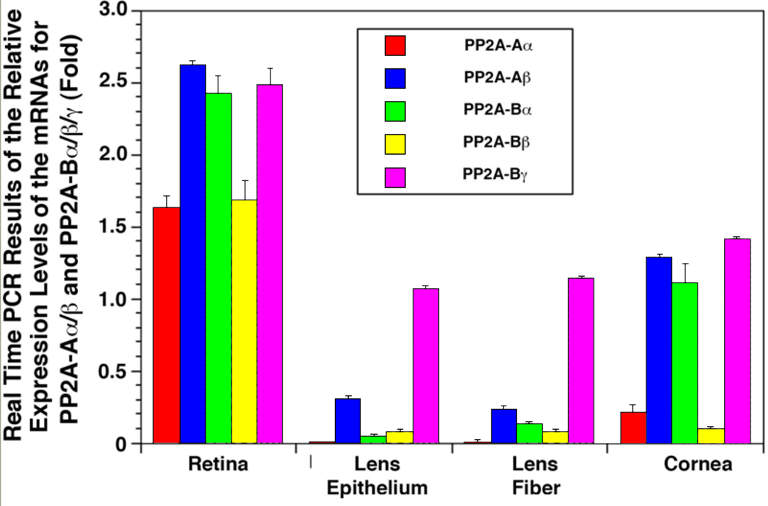 PP2A-Bβ, and PP2A-Bγ in the retina, lens epithelium, lens fiber, and