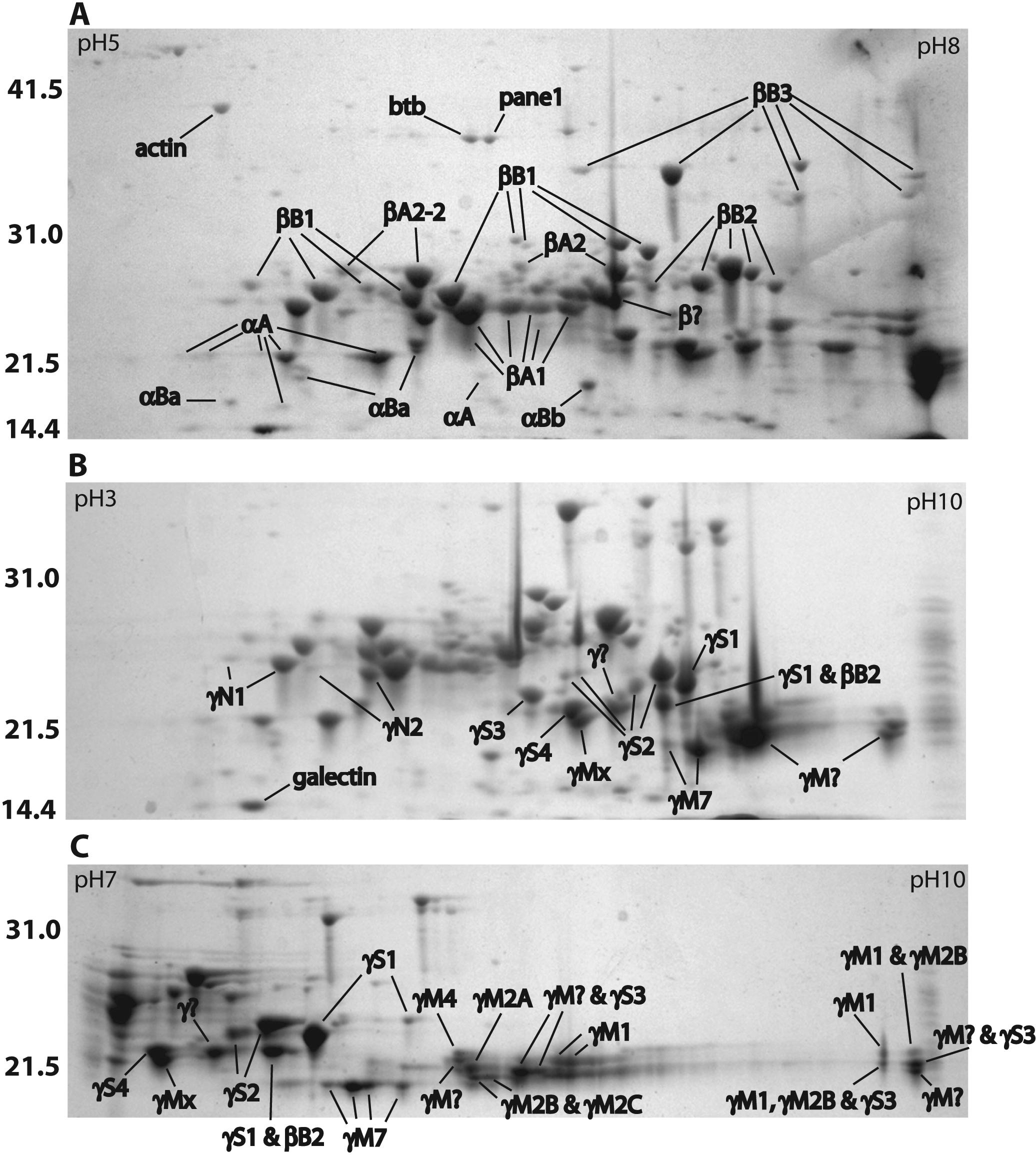 (2-DE) profiles of total adult zebrafish lens protein. Separation was