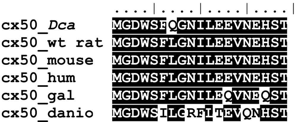 portion of Cx50 indicates that leucine in position 7 is invariably