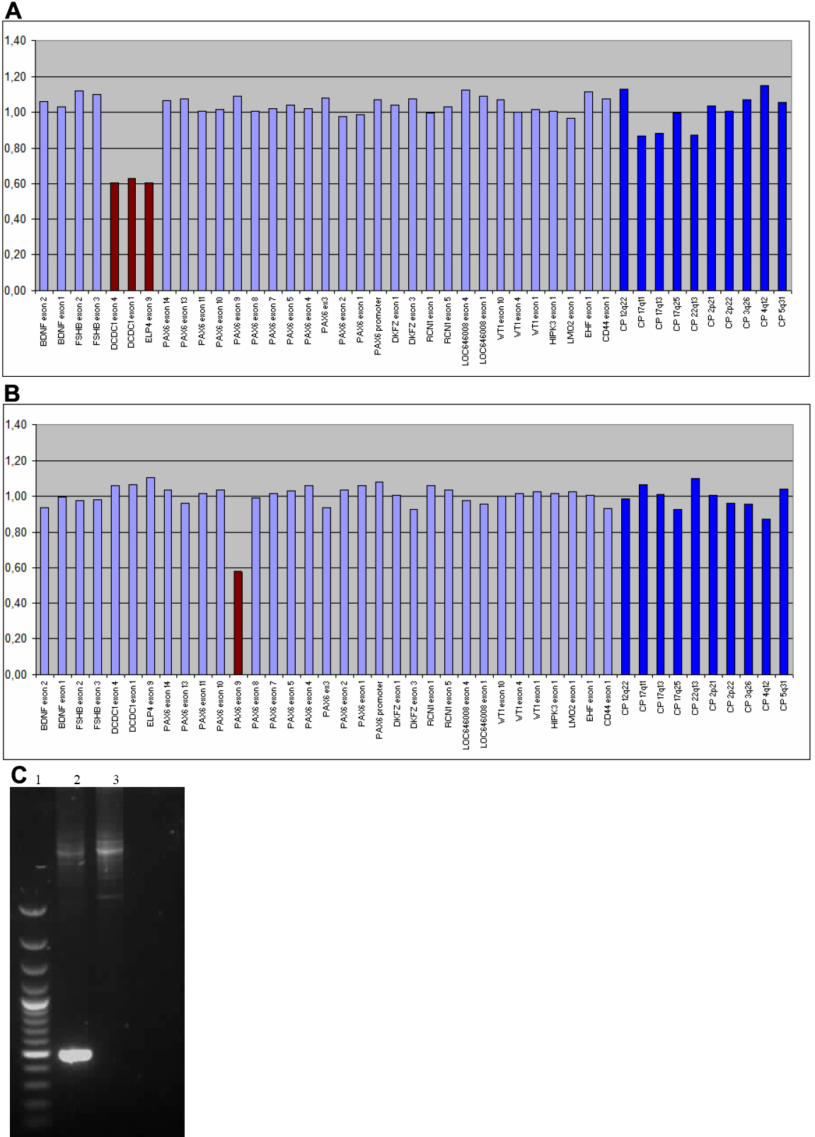 probes. C: Long range PCR for PAX6 exons 8–10 confirmed