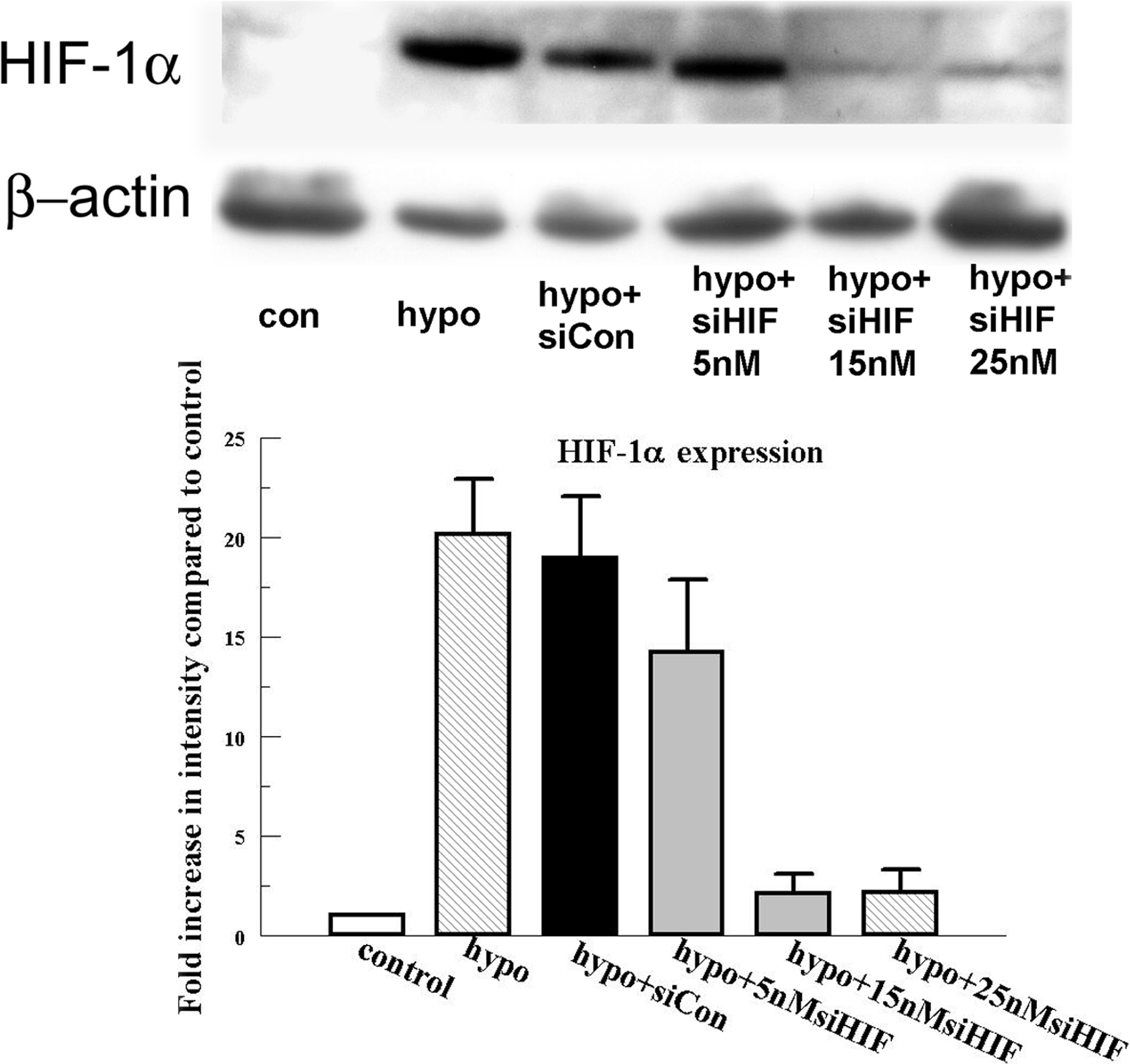 for HIF-1α. Bar graph represents the band intensity relative to the