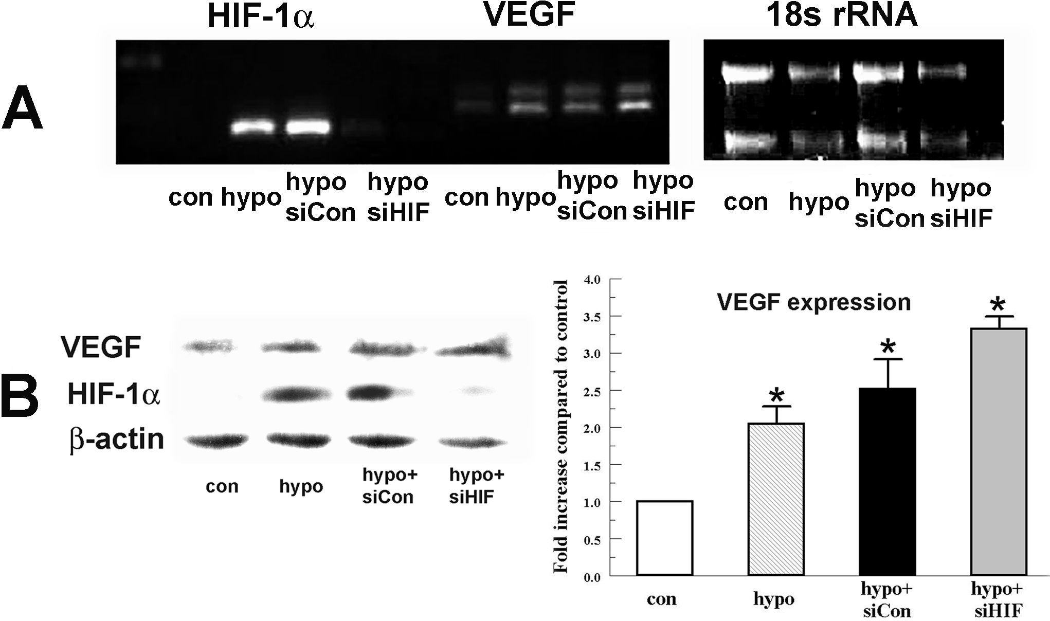 and HIF-1α. β-actin was detected as a loading control. Bar graph shows