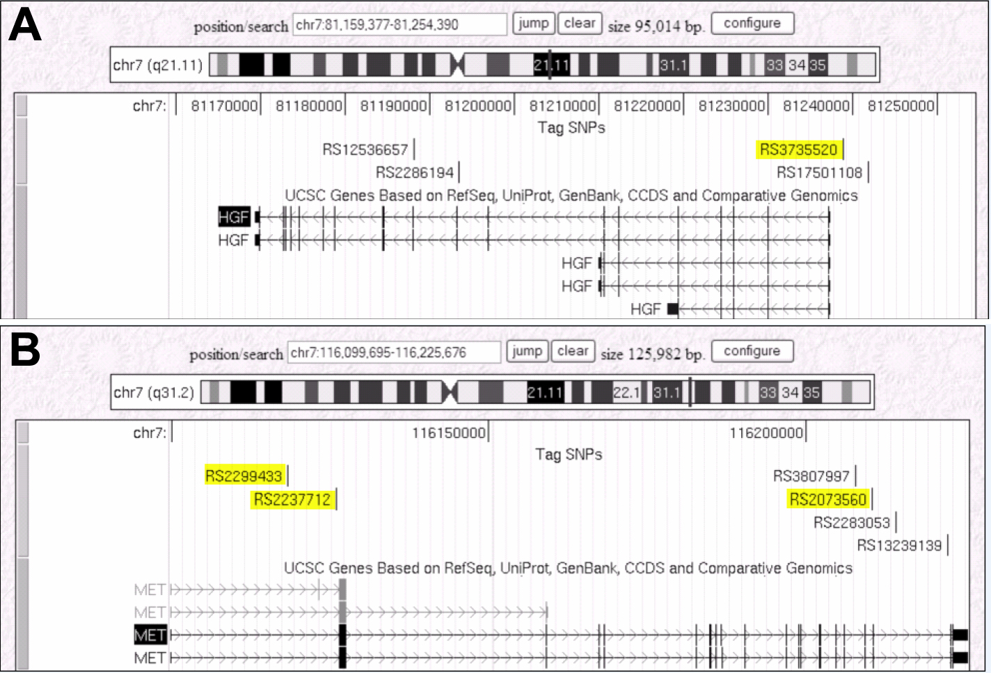 C-MET (1B) genes (source UCSC genome browser). A total of 4 SNPs were selected for