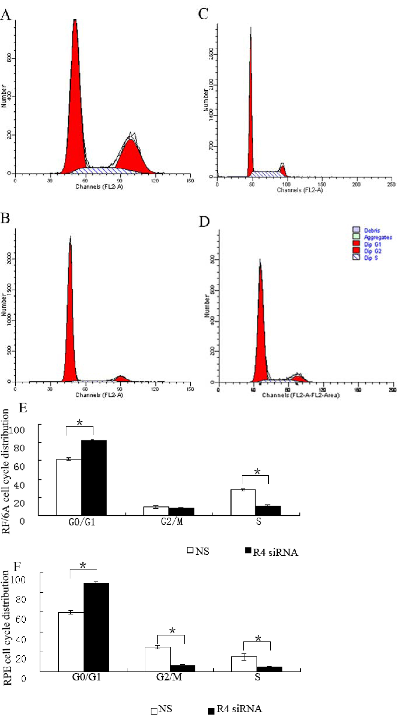 siRNA-treated RPE cells. C: Cell cycle of NS siRNA-treated