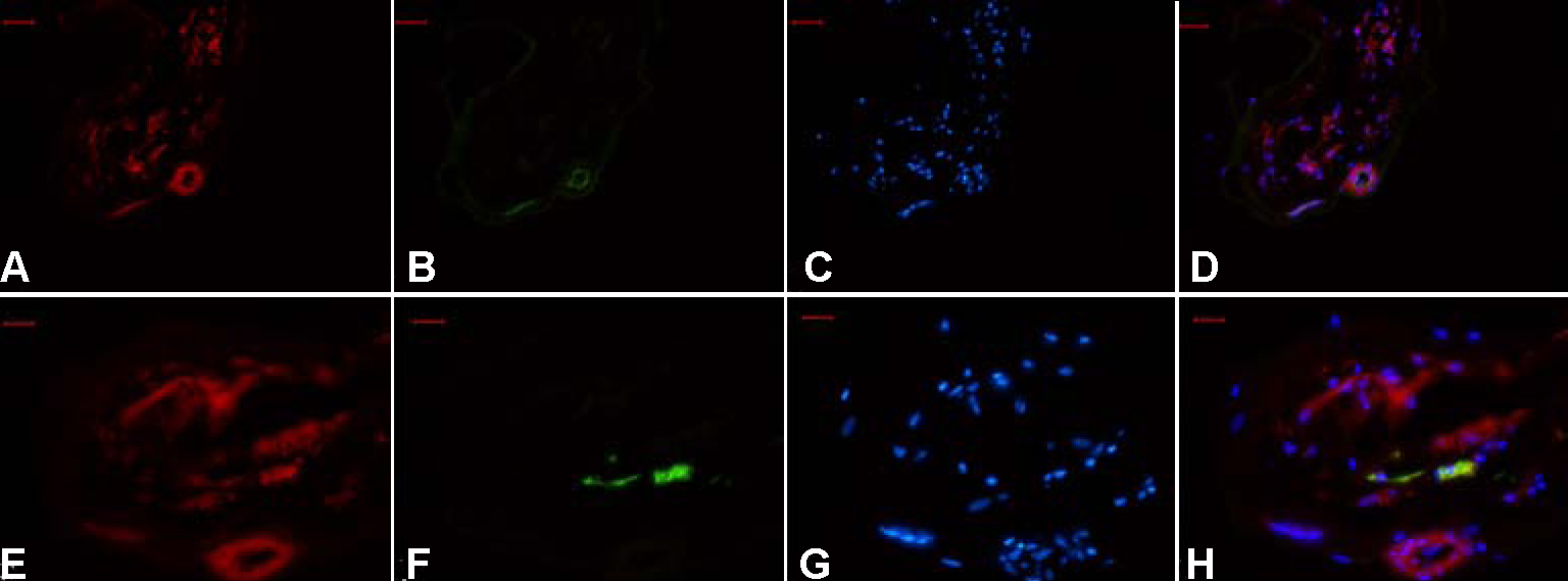 FVMs. Cell nuclei were stained with DAPI (C,G). The