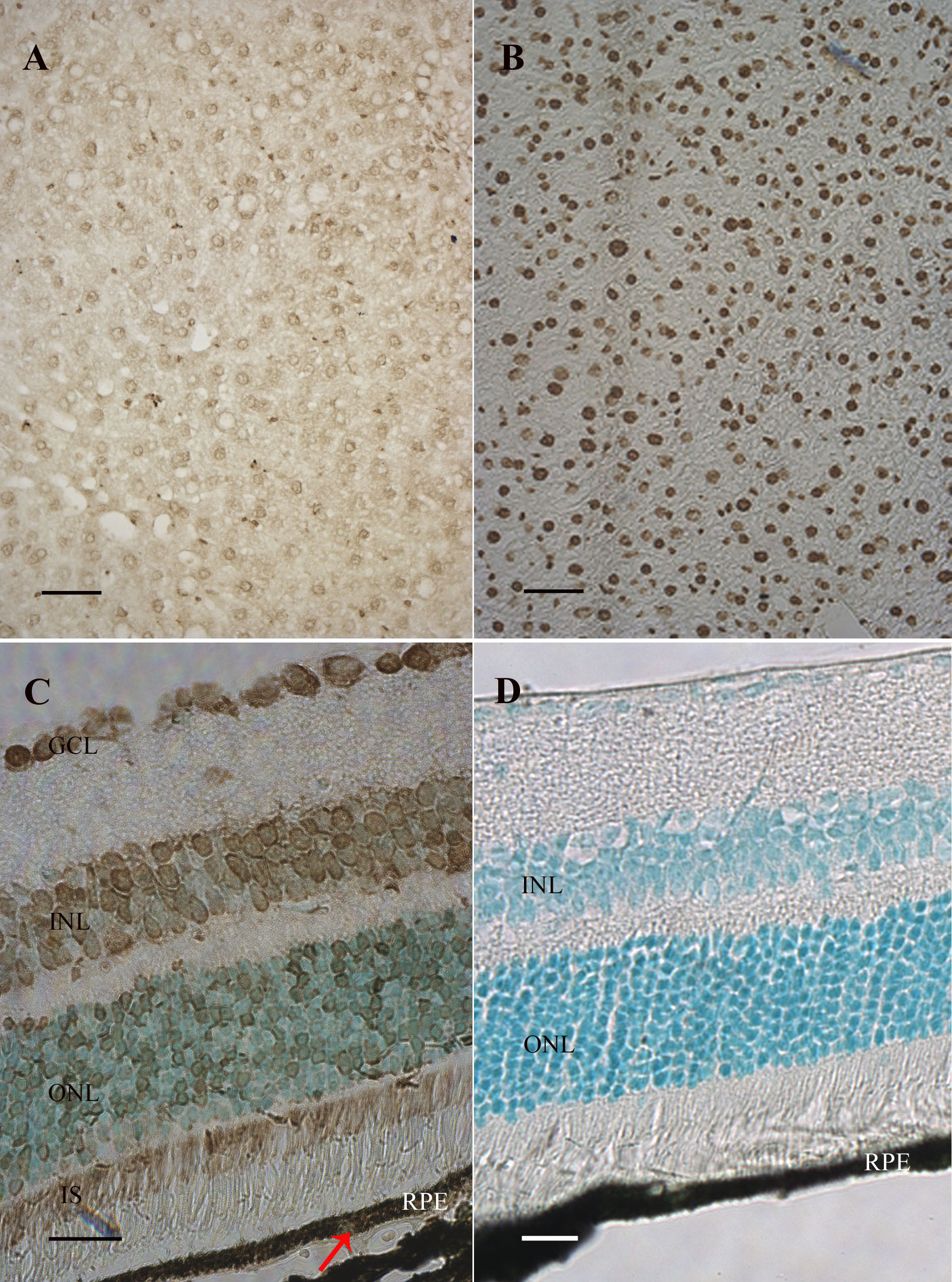 nuclear layers, in photoreceptor inner segments (IS), and in retinal