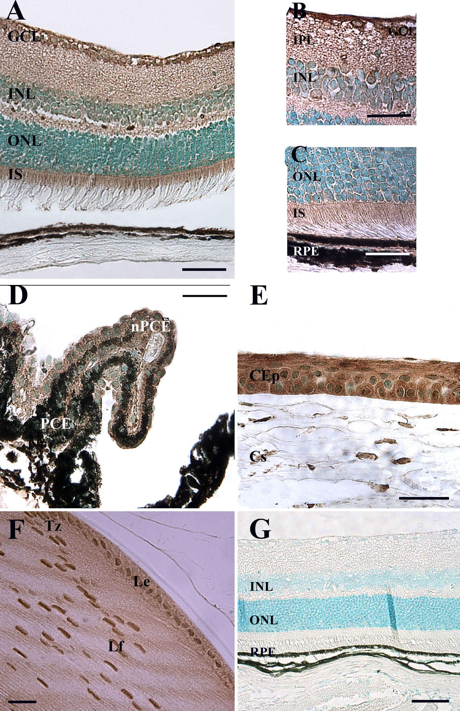detected in non-neuronal cells: corneal epithelium (Cep), pigmentary