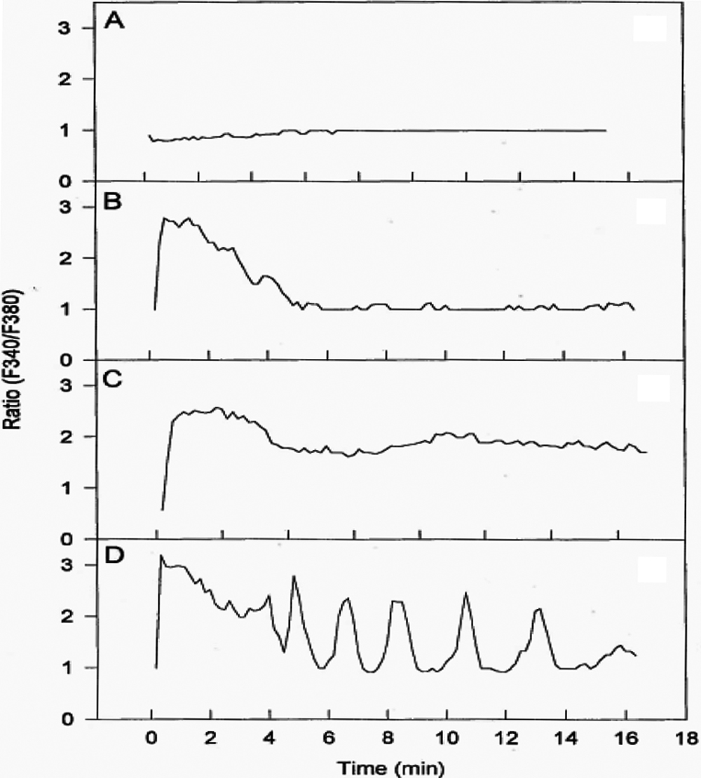 wavelengths of a single cell. High ratio indicates higher [Ca2+]i.