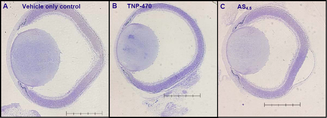 Figure 2. Photomicrographs of the eye and associated structures from E18.5 mice treated with vehicle-only, TNP-470, or AS