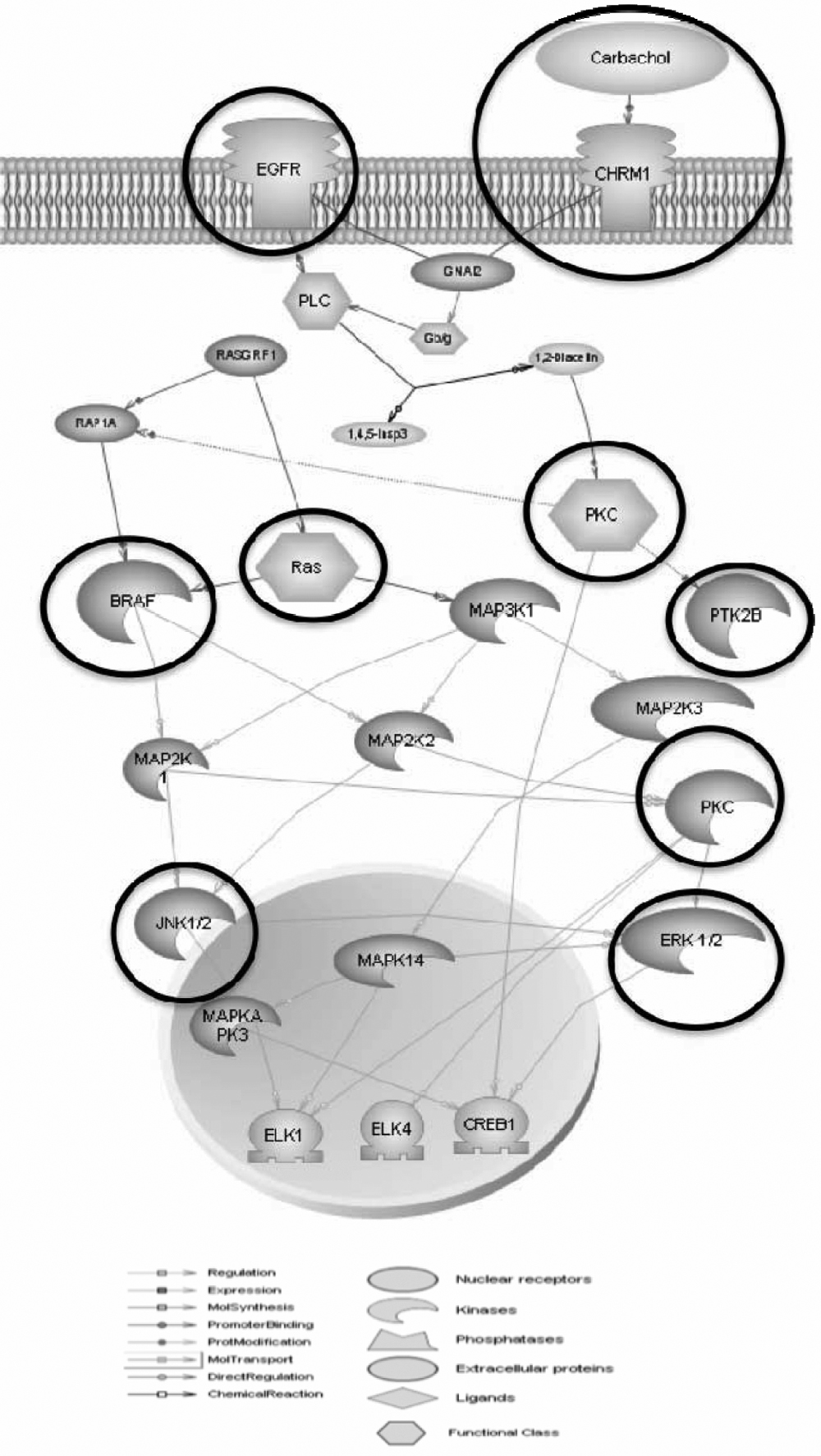 Muscarinic receptor-coupled signal transduction pathways mediating MAPK activity and proliferation in scleral fibroblasts. Both MAPK activity and cell proliferation are strongly activated by cholinergic (ACh) stimulation of mAChRs.
