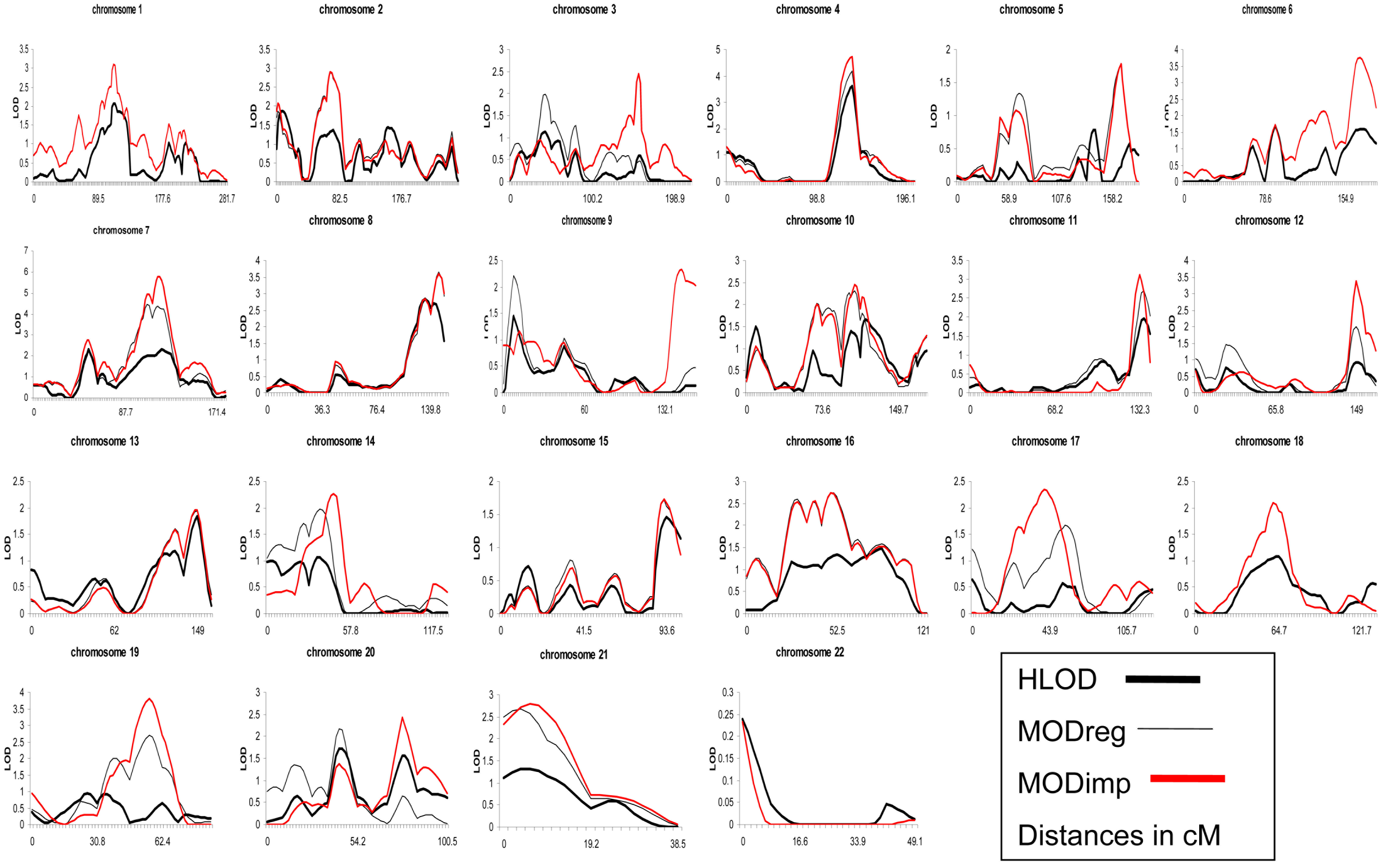 the imprinting model “MODimp”. For each chromosome, the HLOD scores