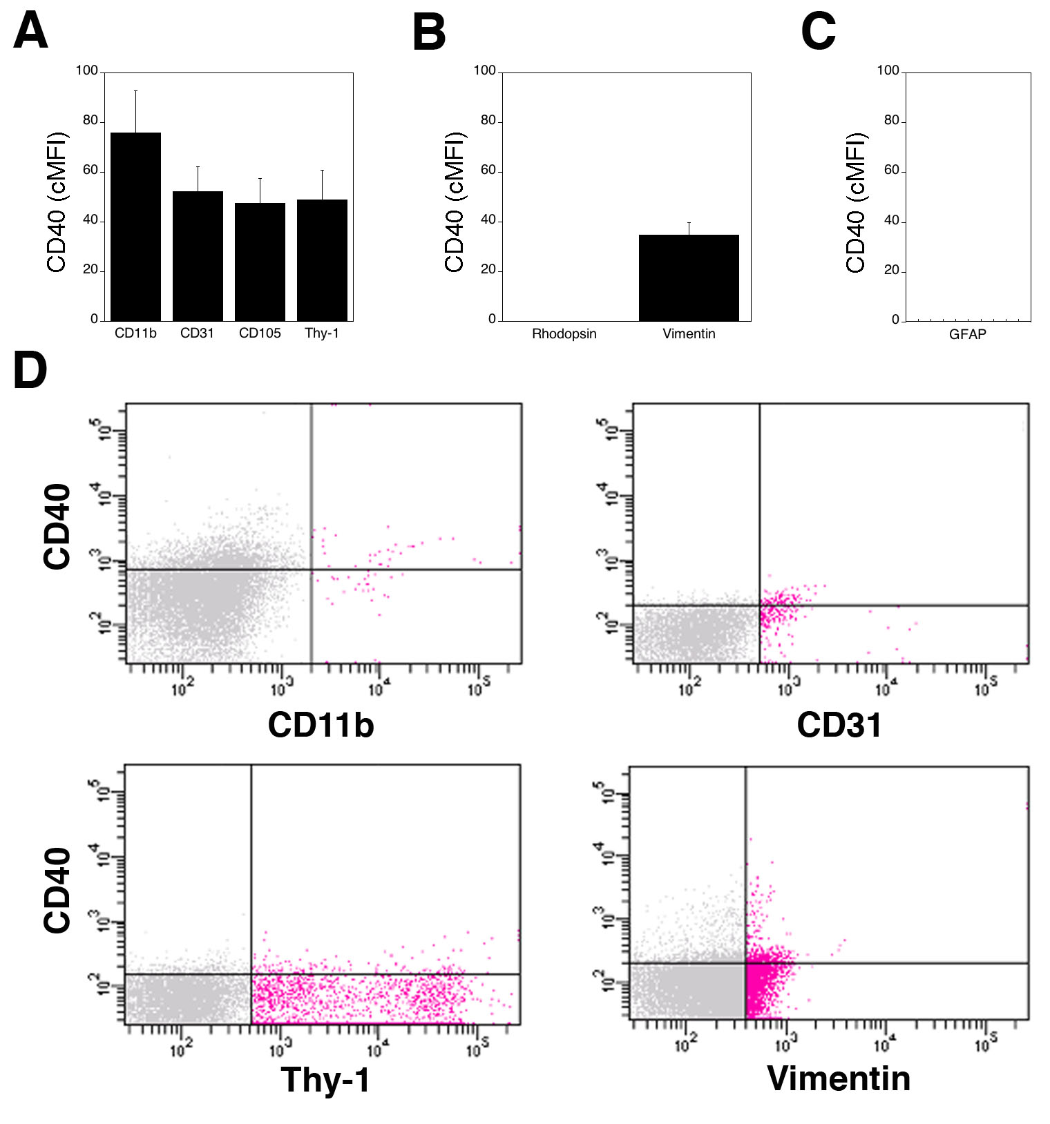 experiments. CD40 was not detected on rhodopsin+ and GFAP+