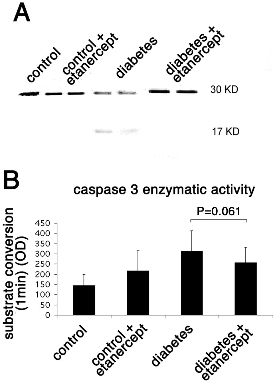 of caspase 3 as measured by the conversion of its specific substrate. Treatment with etanercept reduced the diabetes-induced
