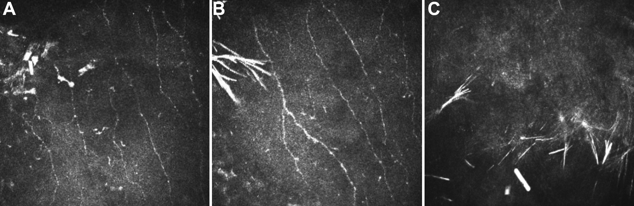 subepithelial nerve fibers in the left cornea. The shapes of the