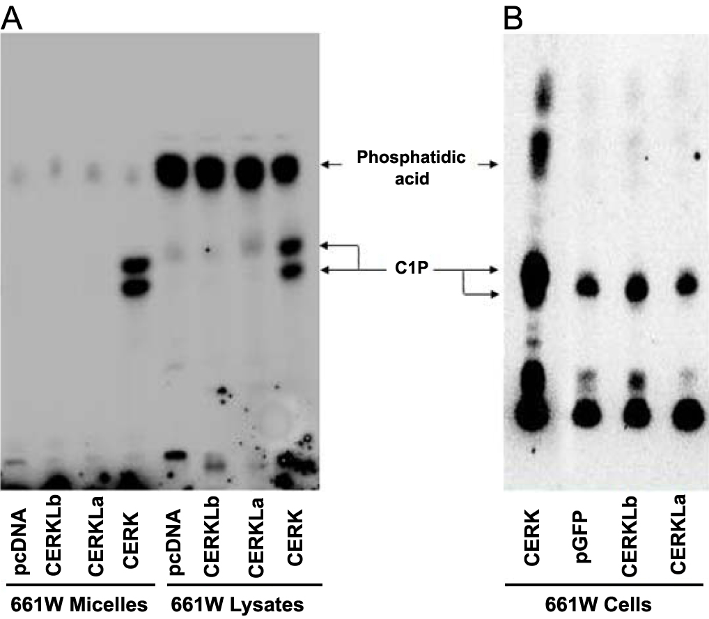 a (532 aa), CERKL isoform b (558 aa) or ceramide kinase CERK (positive