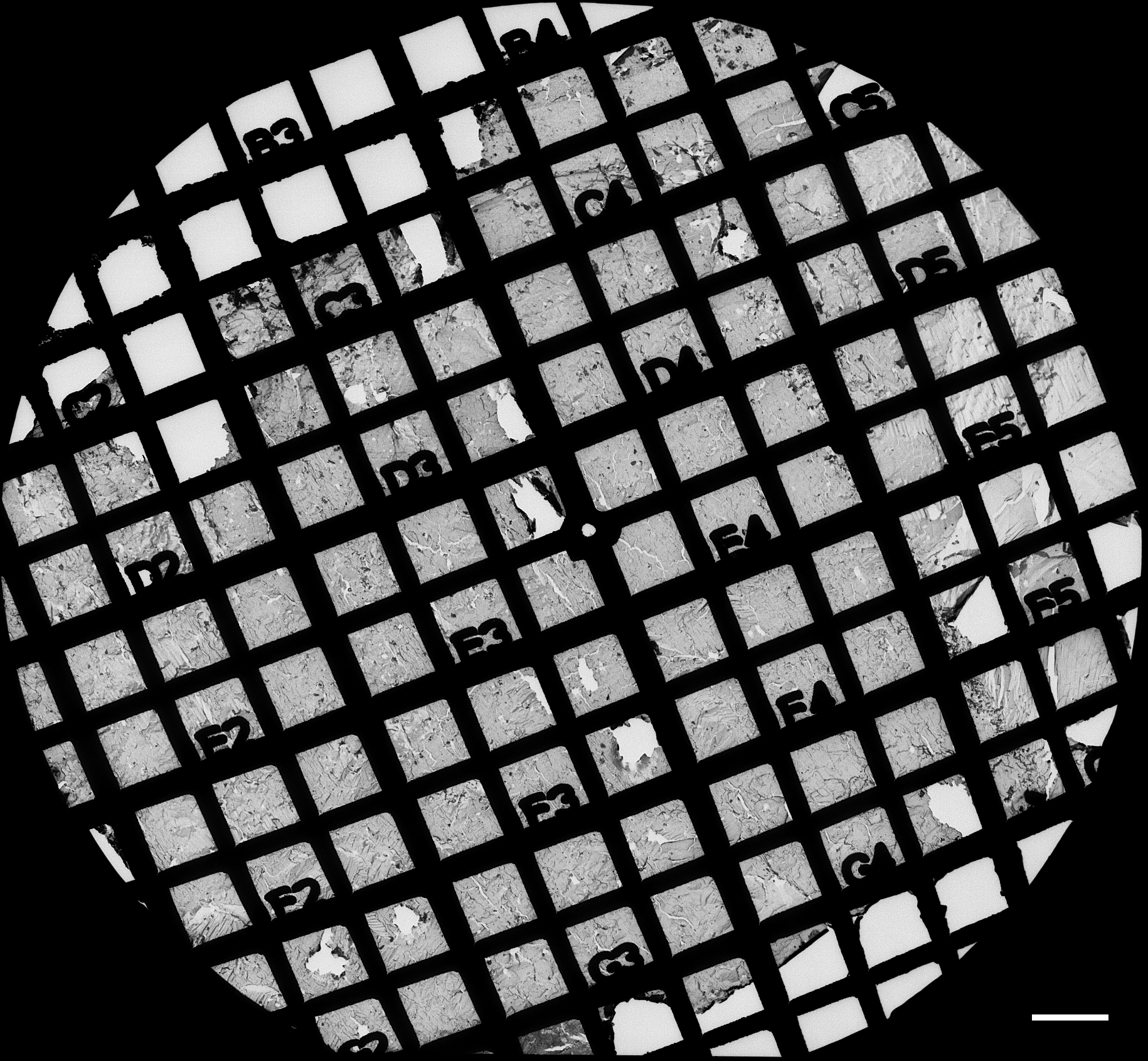 freeze-fracture replica on the Girder finder grid with index number for