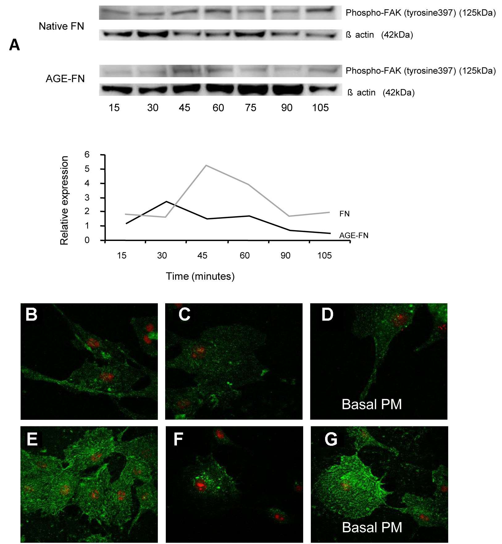 E-G: RMECs cultured on AGE-FN exhibited a greater intensity of
