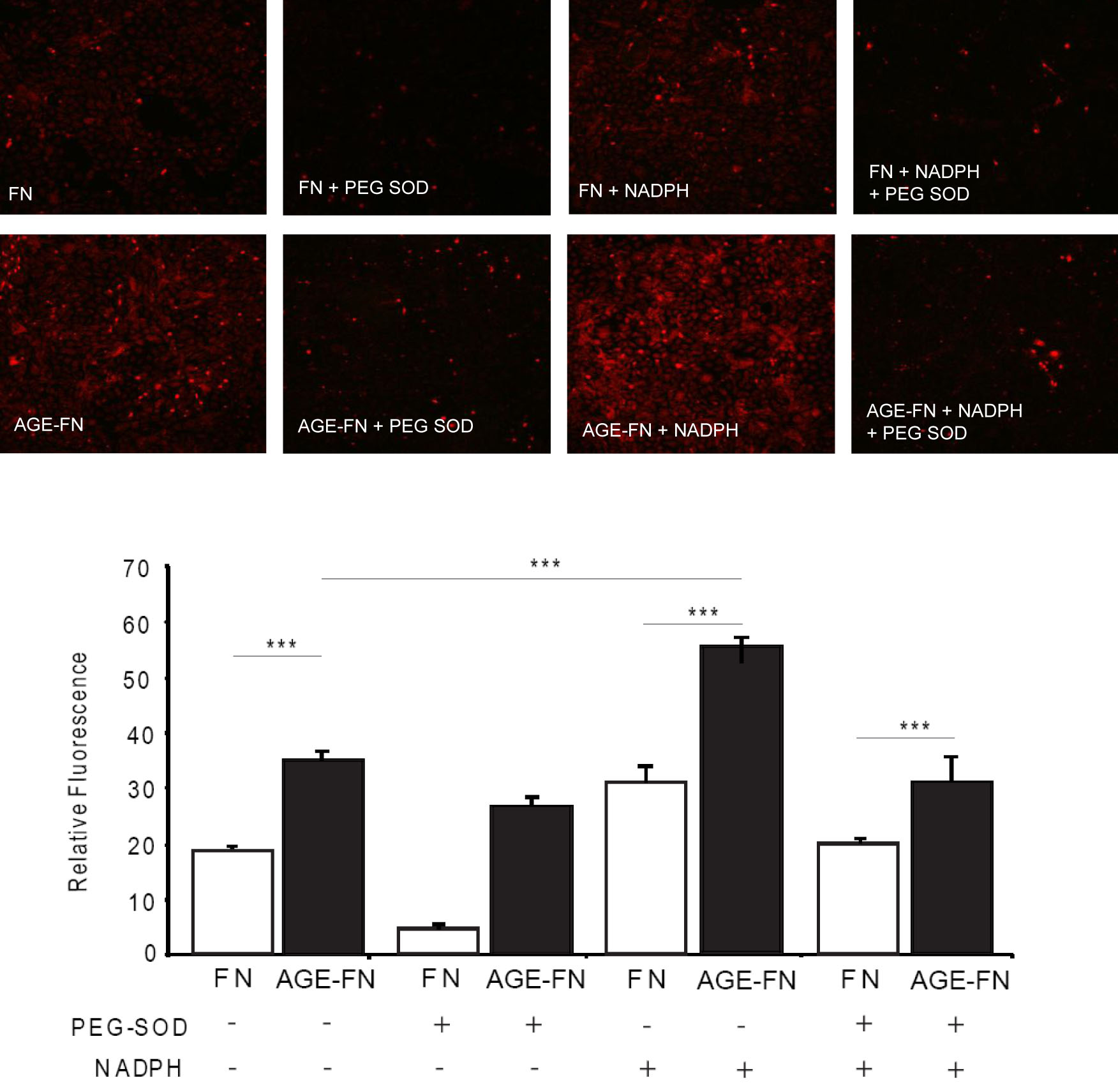 RMECs growing on AGE-FN showed higher basal levels of O2-