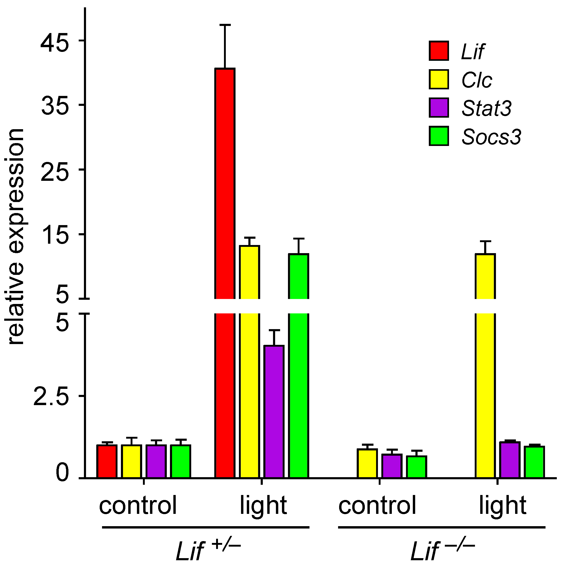 white light for 2 h. RNA levels were expressed relative to levels in Lif+/–