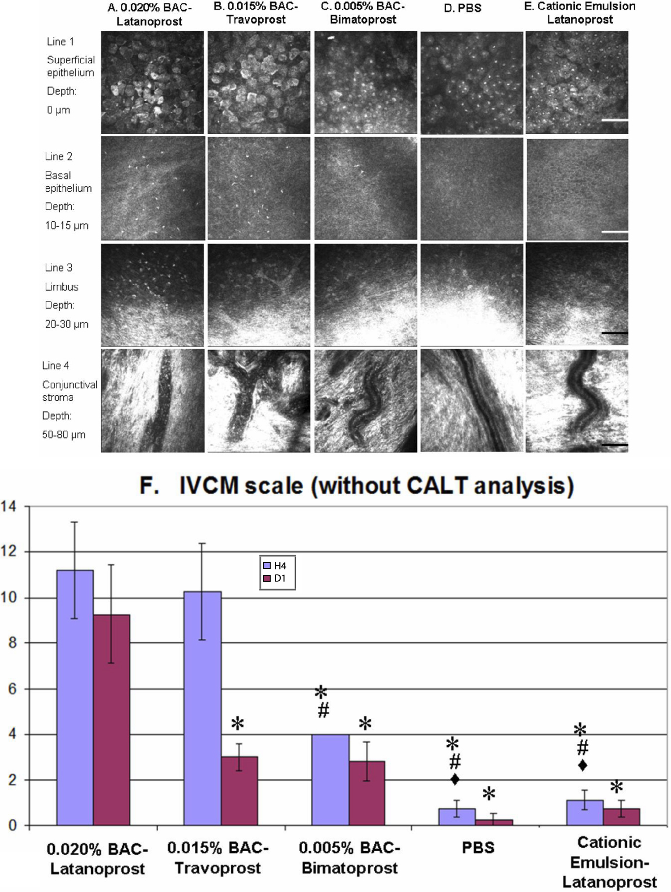 microstructure damage. The scale bar indicates 100 μm. IVCM scores (F)